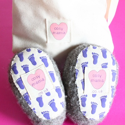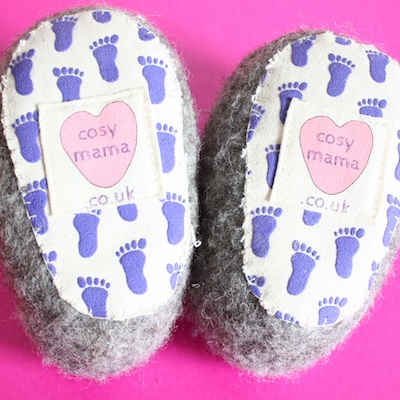 Cosy Mama's Baby Booties are lovingly made using wool from British sheep. The wool is wet felted by hand into the little booties and adorable motifs are added using Merino wool.